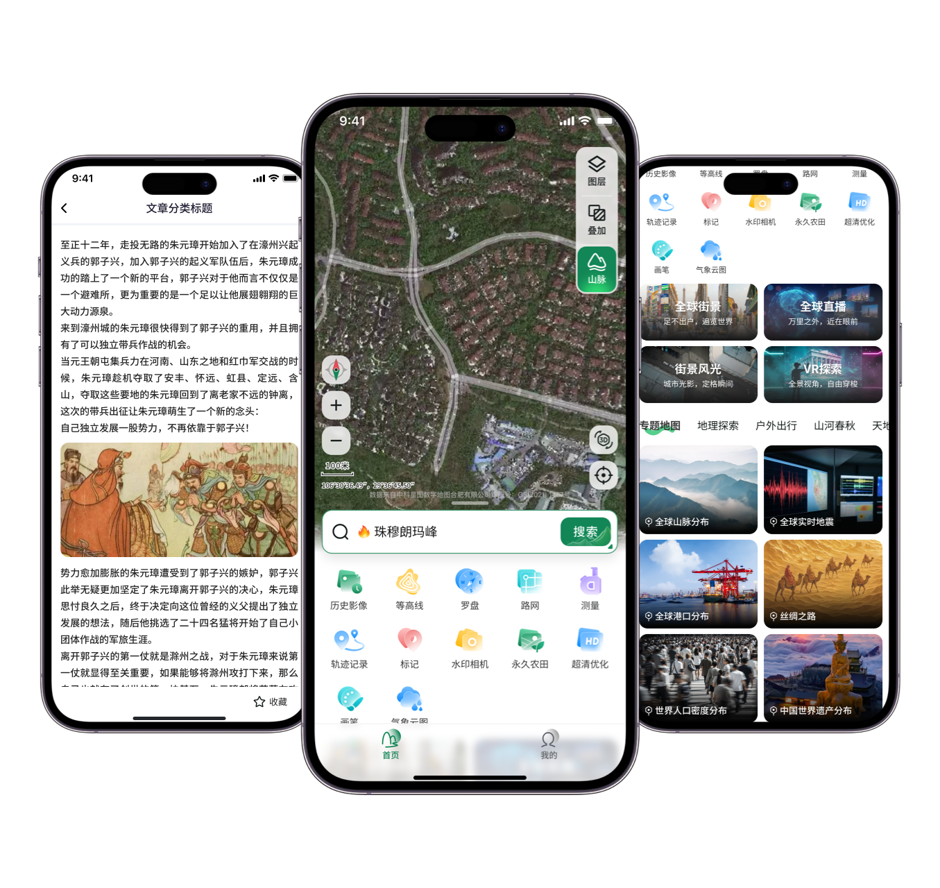整合多源高精度地形数据与权威地理知识库,覆盖地形探索、测量、数据叠加等场景,还可随时获取户外出行、地貌成因、区域特点等知识内容,为地理爱好者、学习者提供更高效的地理观察与分析体验。让每一次地形浏览,都成为一场兼具探索乐趣与知识增量的地理发现之旅。